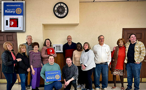 Rotary met with representatives from Penn Hills 224 to donate an AED (automated external defibrillator) that we purchased with the proceeds from our last fundraiser. The device will be housed at their Universal Banquet Hall, used frequently for community gatherings and parties. This investment will help protect all who use this facility.